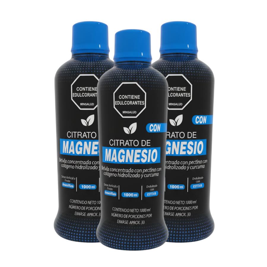 Citrato de Magnesio Líquido Vitalcom 1000 mL con Colágeno Hidrolizado, Vitaminas y Minerales Pague 2 Lleve 3