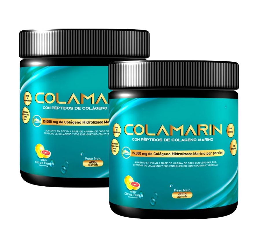COLAMARIN ByPluss es un alimento en polvo diseñado para disolverse en agua y ser consumido como bebida diaria. Está formulado con colágeno hidrolizado marino, vitaminas, minerales esenciales, y compuestos bioactivos como biotina, DHA, y cúrcuma, que contribuyen al bienestar integral del cuerpo.