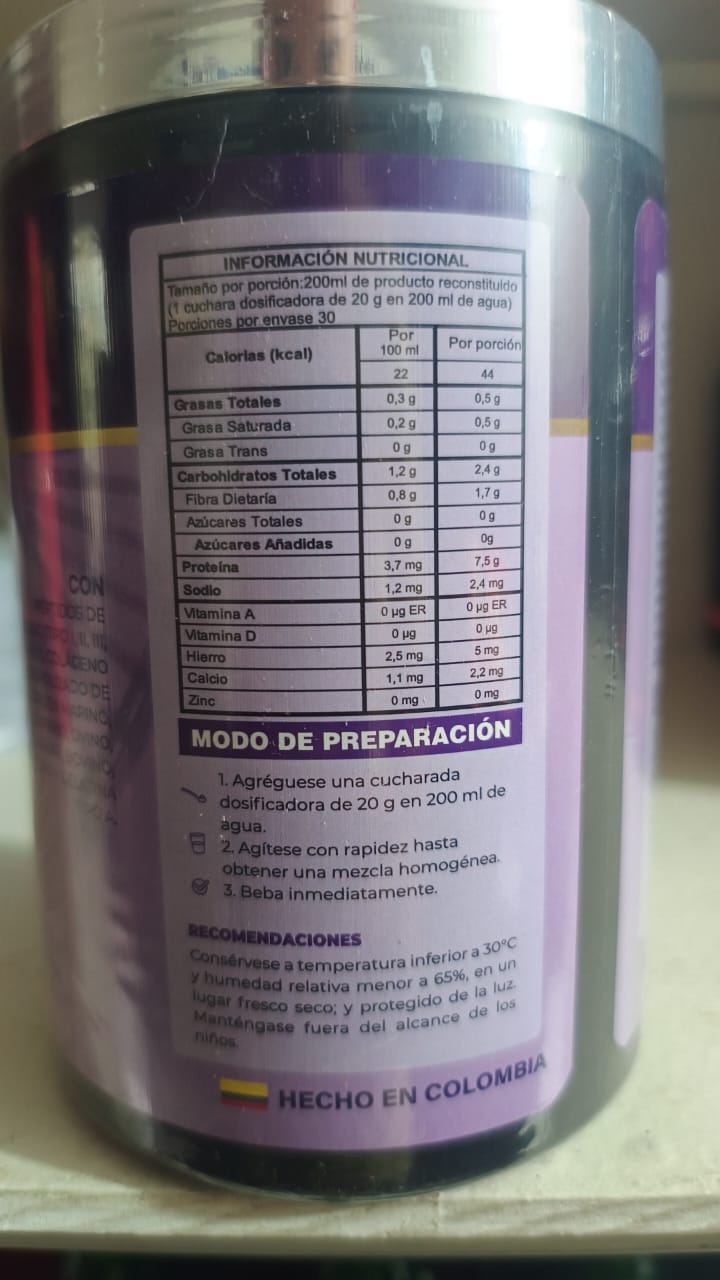 Mezclar 1 cucharada (aprox. 20g) en un vaso de agua, jugo o bebida de preferencia.