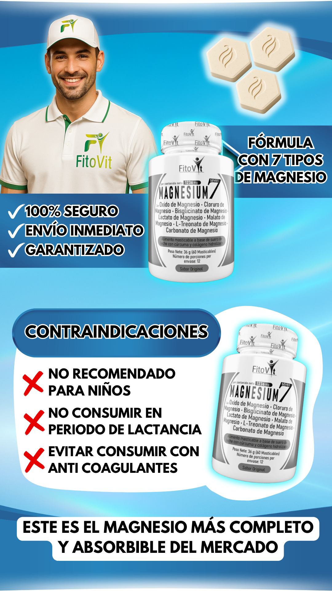 💪 Fórmula completa con 7 fuentes de magnesio.