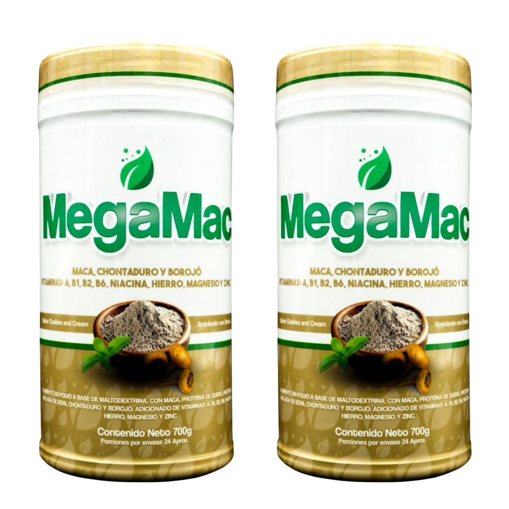 MEGAMAC es un alimento en polvo tipo mezcla para bebida, elaborado con ingredientes naturales y funcionales como maca, chontaduro, borojó, proteína de suero, proteína aislada de soya y maltodextrina. Esta combinación aporta proteínas, vitaminas y minerales esenciales que complementan una dieta equilibrada y un estilo de vida activo. 🌿💪