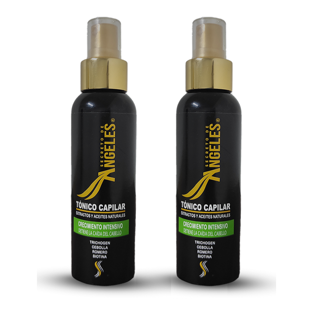 El Tónico Capilar Secreto de Ángeles es un producto cosmético de uso diario formulado con extractos y activos de origen natural que ayudan a fortalecer el cuero cabelludo, mejorar la apariencia del cabello y estimular un crecimiento saludable, aportando vigor, resistencia y brillo desde la raíz.