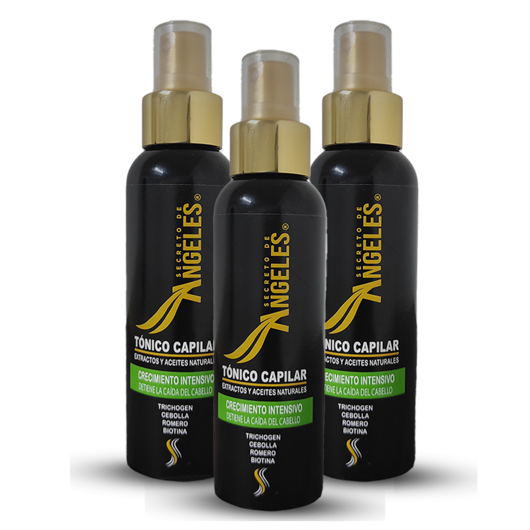 El Tónico Capilar Secreto de Ángeles es un producto cosmético de uso diario formulado con extractos y activos de origen natural que ayudan a fortalecer el cuero cabelludo, mejorar la apariencia del cabello y estimular un crecimiento saludable, aportando vigor, resistencia y brillo desde la raíz.